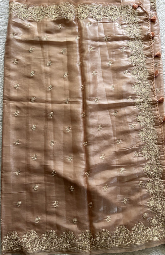 Tissue Organza Saree Light Baby Pink Colored Complemented with a Borderless.
