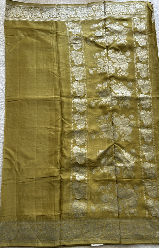 Viscose Georgette Saree Mustard Yellow Colored Complemented with a Zari Border.