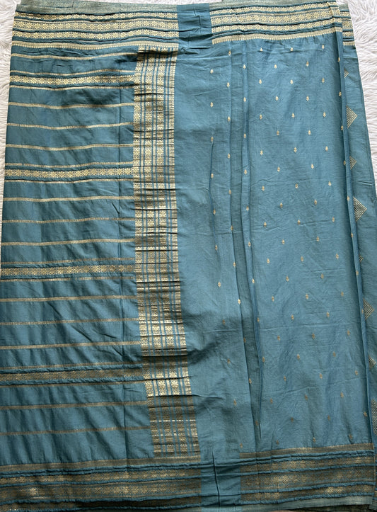 Narayanpet Cotton Saree Light Green Colored Complemented with a Zari Border.