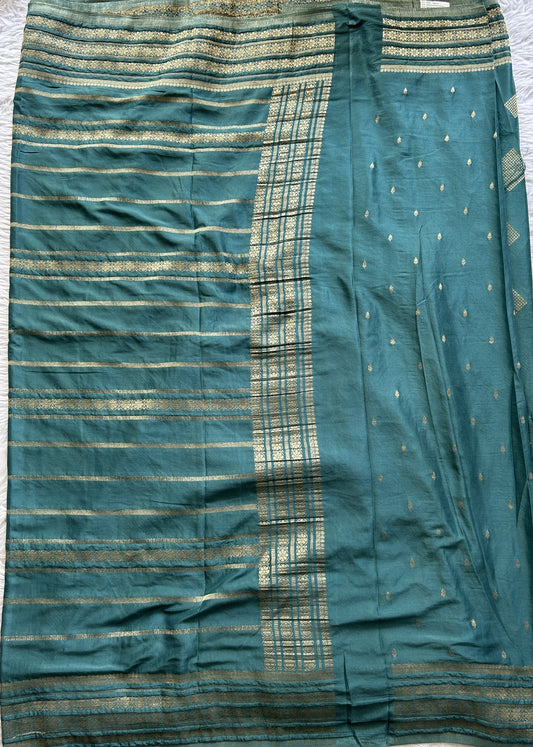 Semi Georgette Saree Pine Green Colored Complemented with a Zari Border.