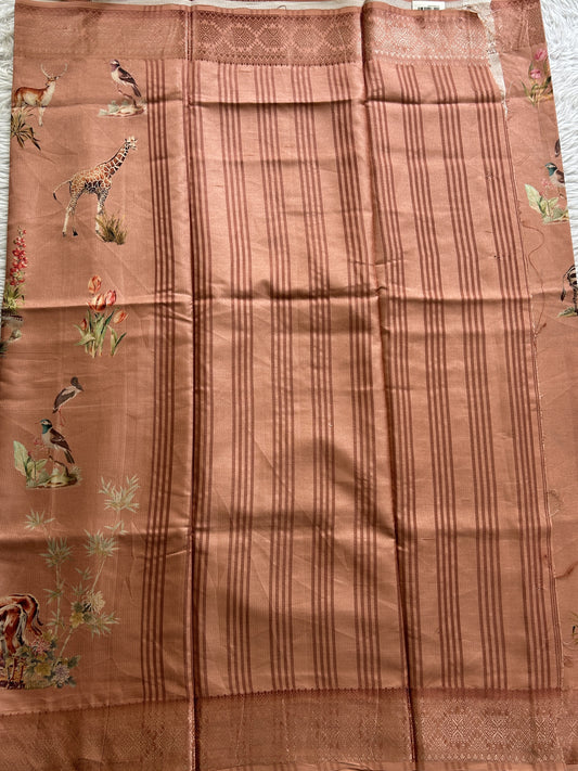Semi Raw Silk Saree Snuff Colored Complemented with a Zari Border.