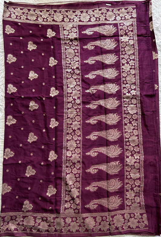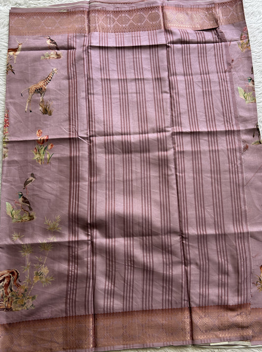 Banarasi Soft Silk Saree Mauve Colored Complemented with a Zari Border.