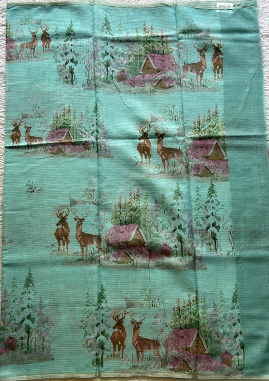 Mangalagiri Pattu Digital Print Saree Blue colored complemented with a Olive Green Zari Border