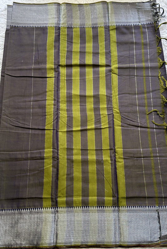 Pure Zarikota Saree Olive Green Colored Complemented with a Zari border.