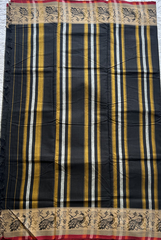 Narayanpet Cotton Saree Black Colored Complemented with a Minakari Thread Border.