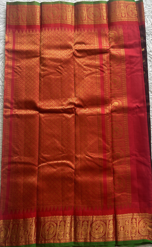 Gadwal sarees are distinguished by their rich motifs and intricate borders, which draw inspiration from local folklore and natural beauty. The traditional designs often feature temple patterns, floral art, and geometric shapes, woven into the fabric with a finesse that is unparalleled. In recent times, we've seen modern adaptations that incorporate contemporary elements, making these sarees a perfect blend of the old and the new.Color Palette