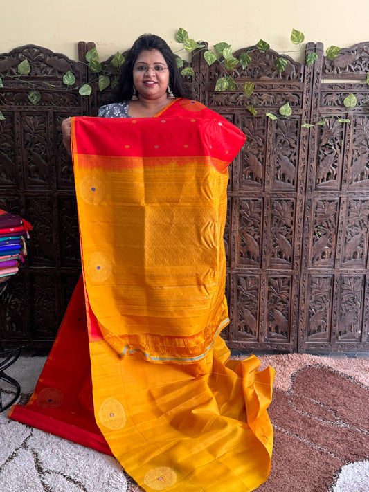 Orange Gadwal Silk Saree with Gold Zari Border — Pure Handloom | Silk Mark Certified