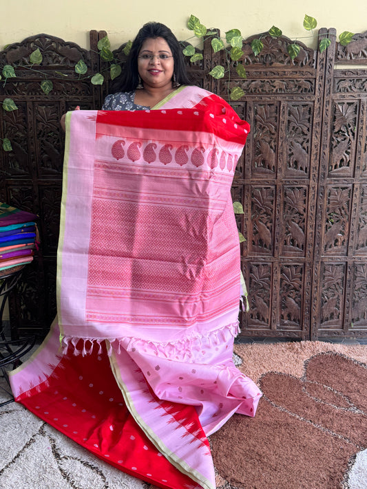 Ikkat Pattu Saree Red colored complemented with a Patola border.