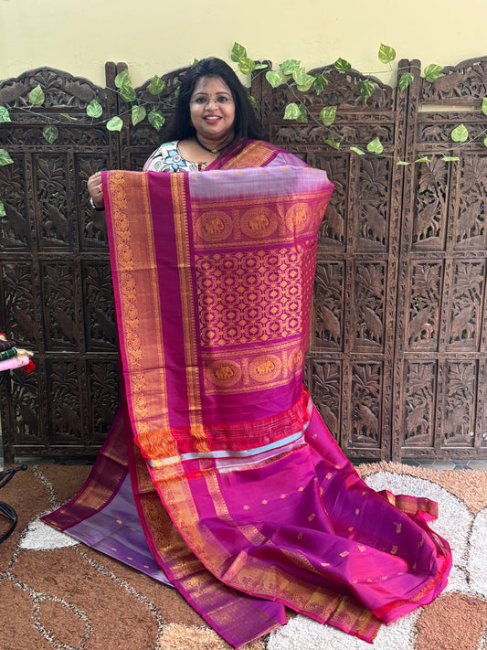 Violet Gadwal Silk Saree with Gold Zari Border — Pure Handloom | Silk Mark Certified