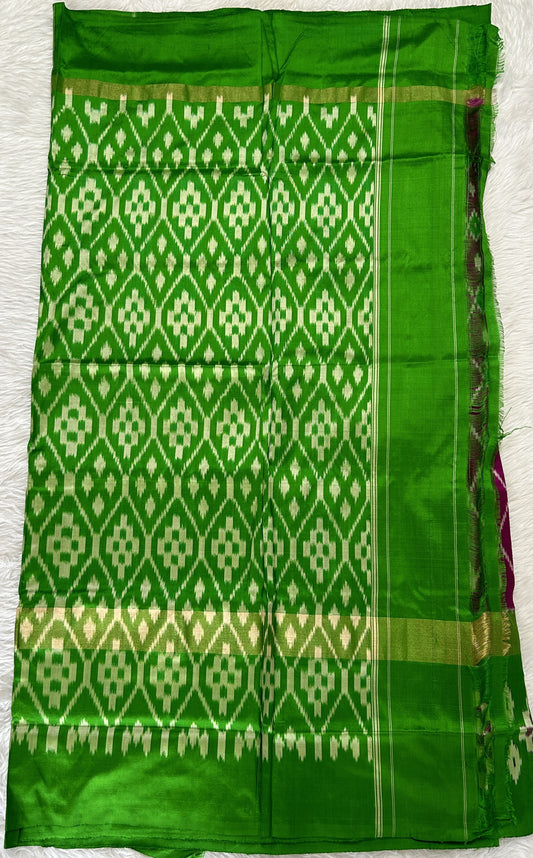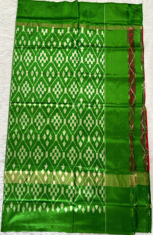 Ikkat Pattu Saree Green colored complemented with a Ikkat Zari border.
