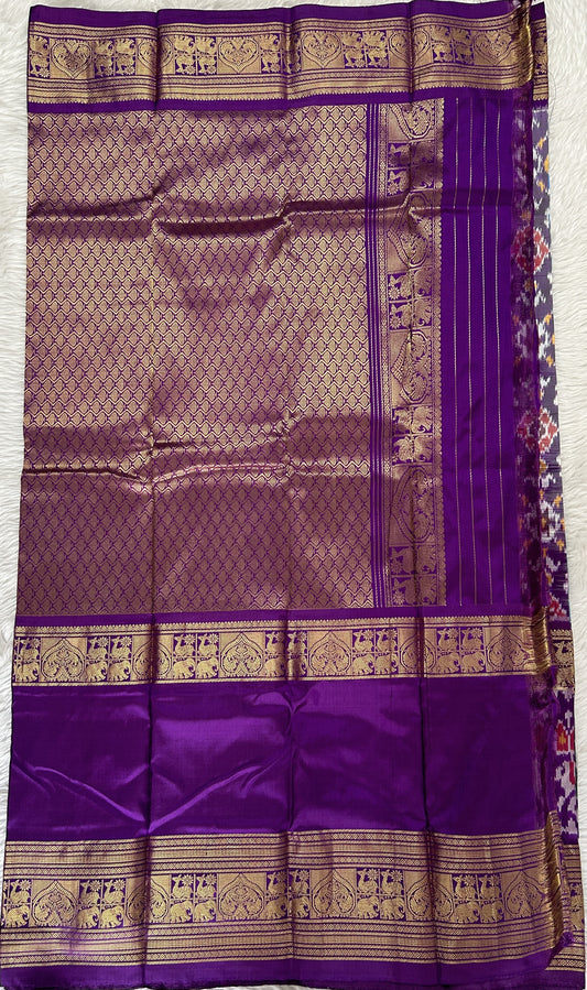Ikkat Pattu Saree Violet colored complemented with a Zari border.