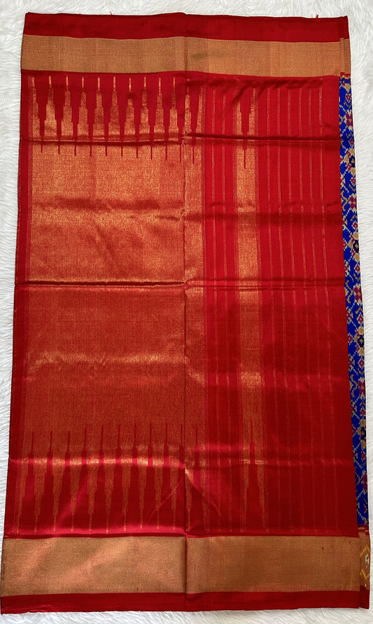 Ikkat Pattu Saree Blue colored Saree complemented with a Red Colored Ikkat border.