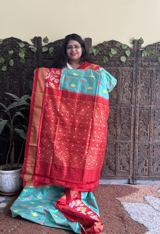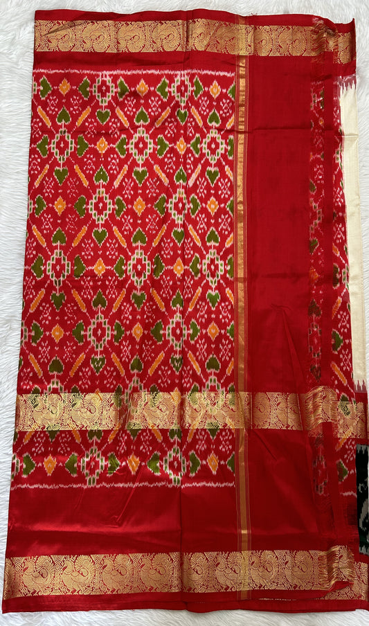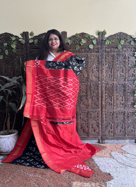 Ikkat Pattu Saree Red colored complemented with a Patola border.