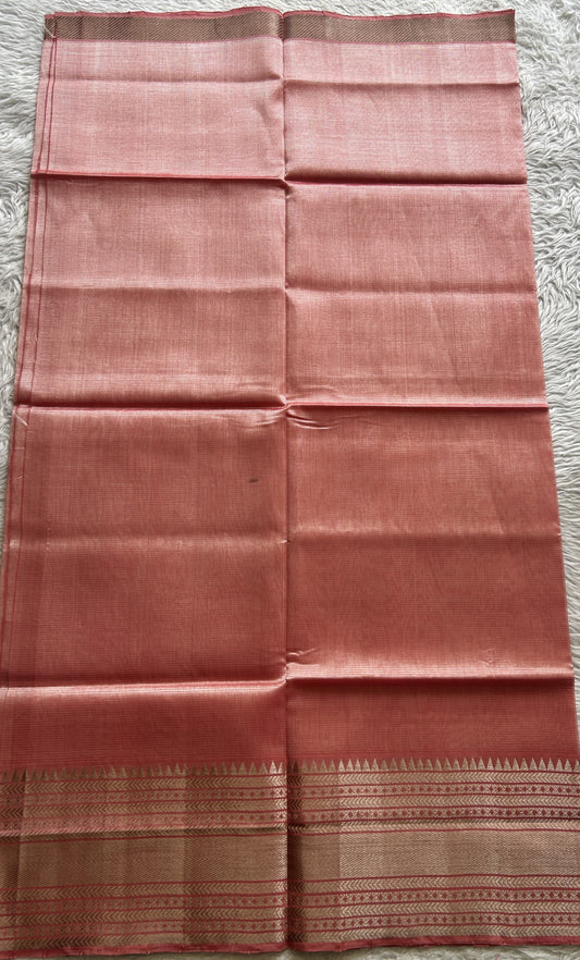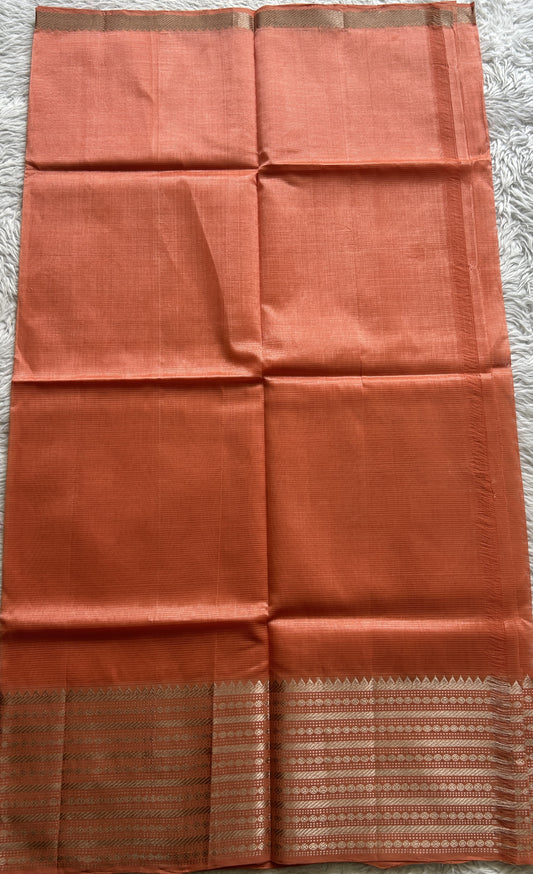 Mangalagiri Plain Pattu Saree Peach colored complemented with a Zari Border