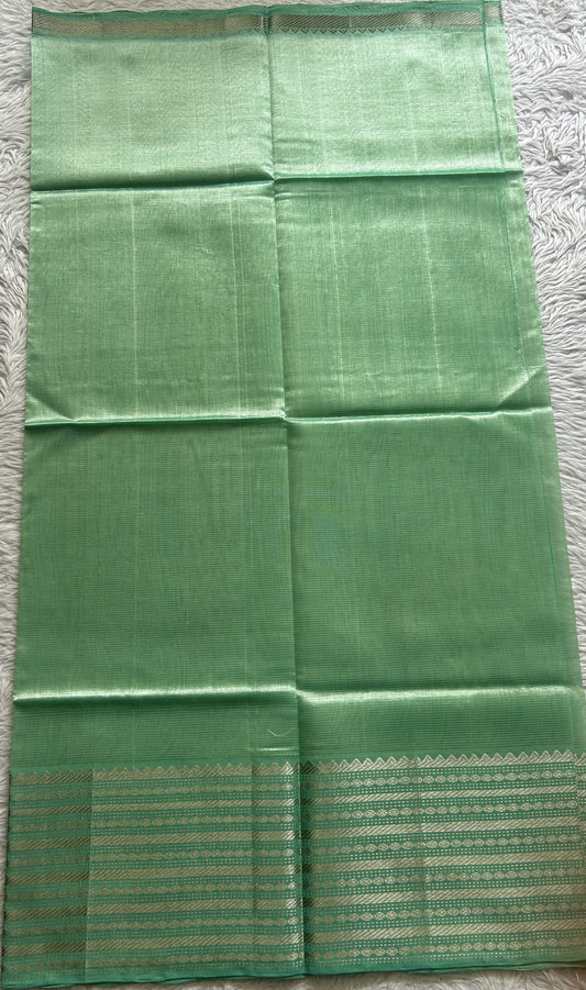 Pure Mangalagiri Pattu Dress Material Light Green Color With a Zari Border.