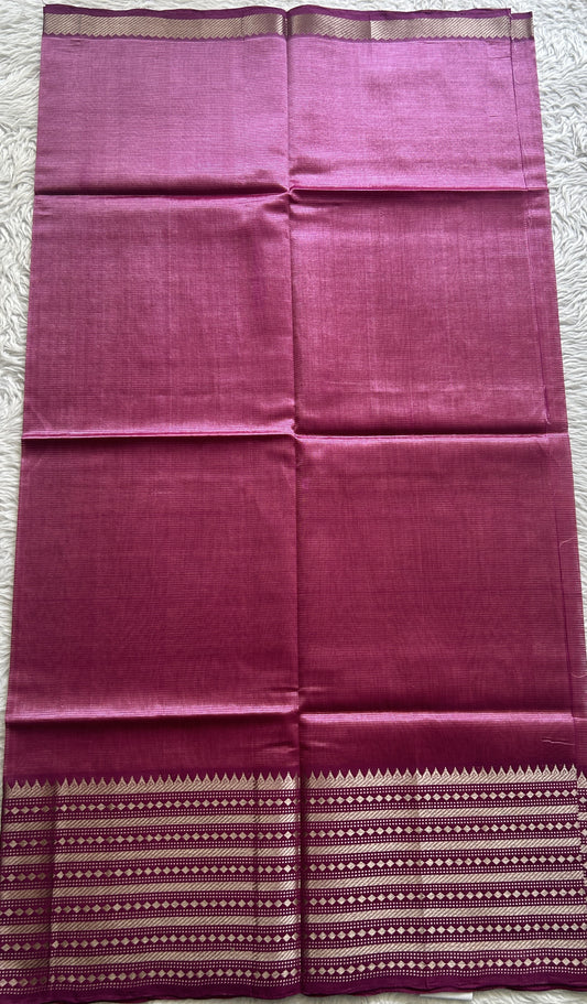 Pure Mangalagiri Pattu Dress Material Onion Pink Color With a Zari Border.