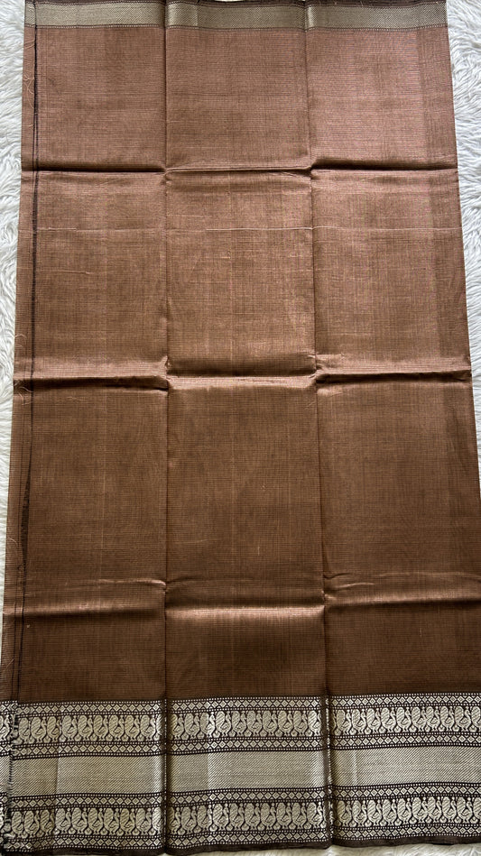 Dola Crepe Saree Brown Colored Complemented with a Zari Border.