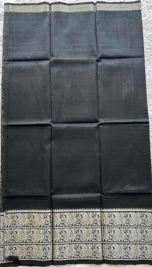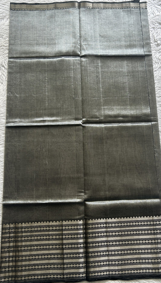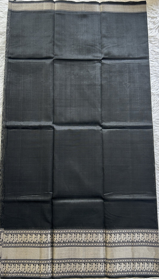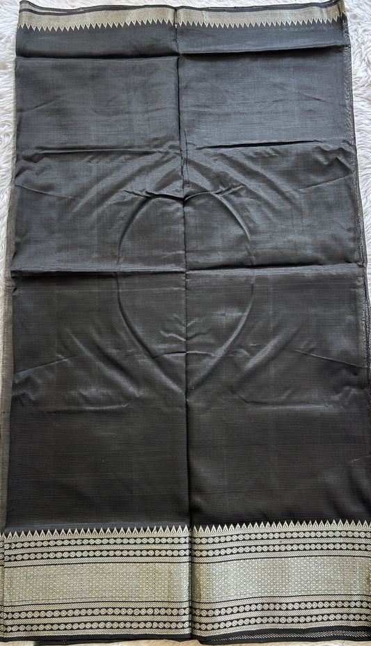 Gadwal Silk Saree Elephant Gray Colored Complemented With a Zari Border