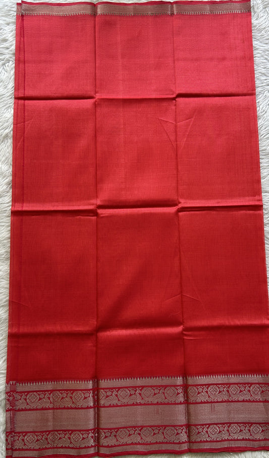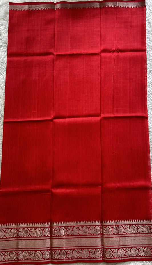 Banarasi Tussar Georgette Saree Red Colored Exquisite Zari Border.