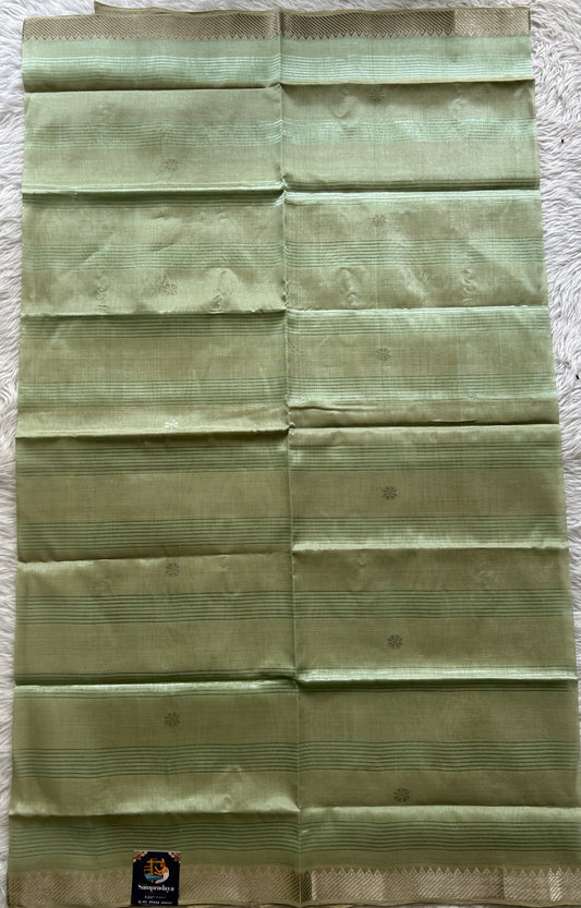 Narayanpet Cotton Saree Light Green Colored Complemented with a Zari Border.