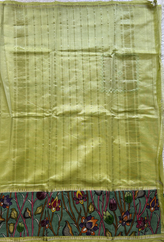 Mangalagiri Plain Pattu Saree Neon colored complemented with a Pen Kalamkari Border.