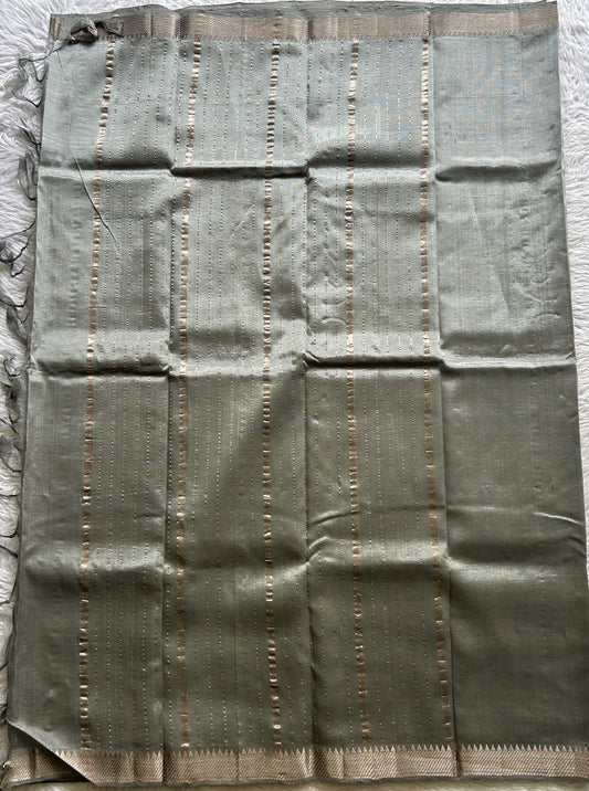 Mangalagiri Plain Pattu Saree Gray colored complemented with a Zari Border