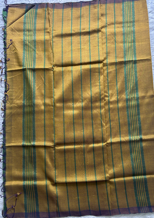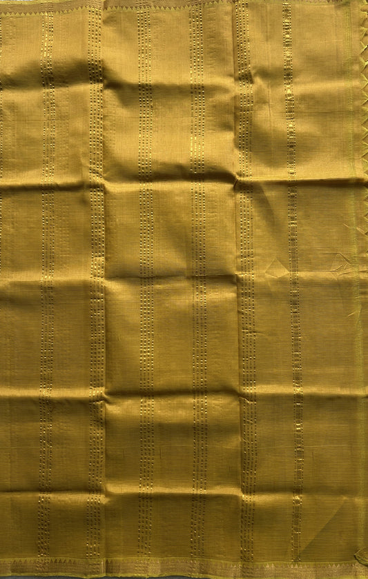 Mangalagiri Plain Pattu Saree Mustard colored complemented with a Zari Border.