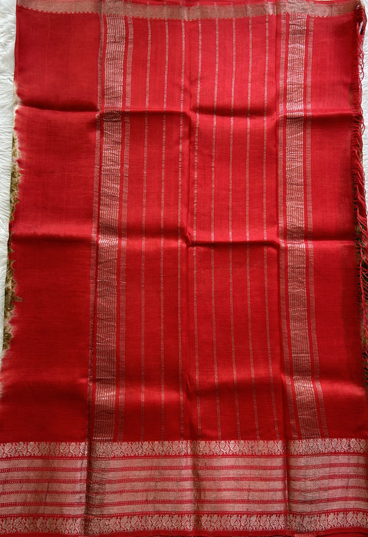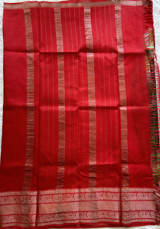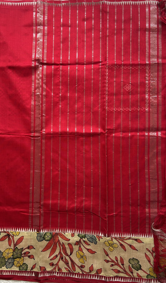 Mangalagiri Pen Kalamkari Saree Red colored complemented with a Zari border.