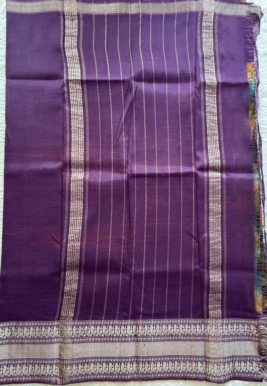 Mangalagiri Pattu Shibori Saree Multi colored complemented with a Purple Color Zari Border