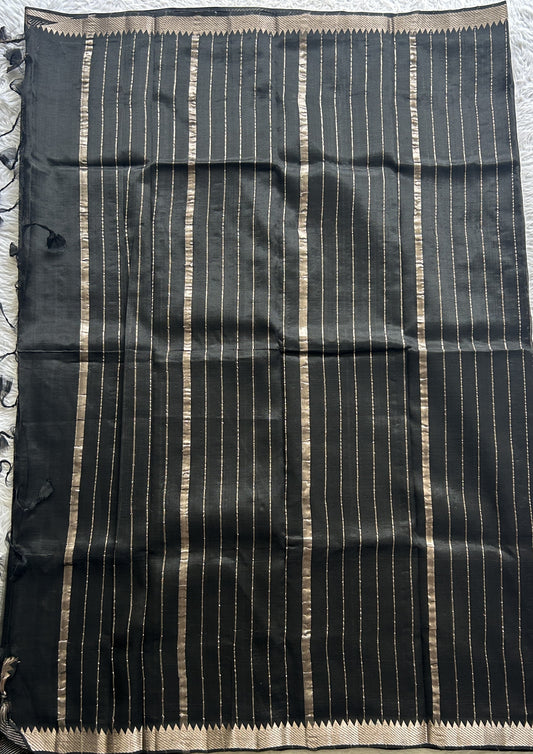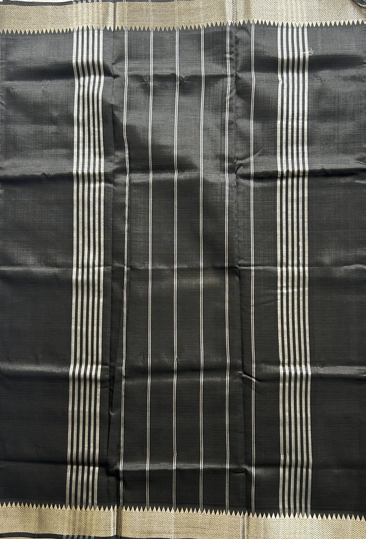 Mangalagiri Plain Pattu Saree Black colored complemented with a Zari Border.