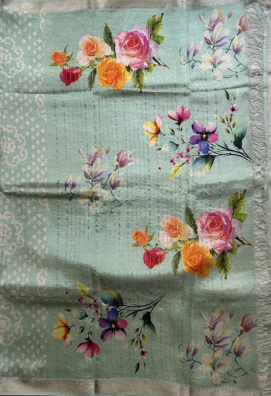 Mangalagiri Pattu Digital Print Saree Sea Green colored complemented with a Zari Border