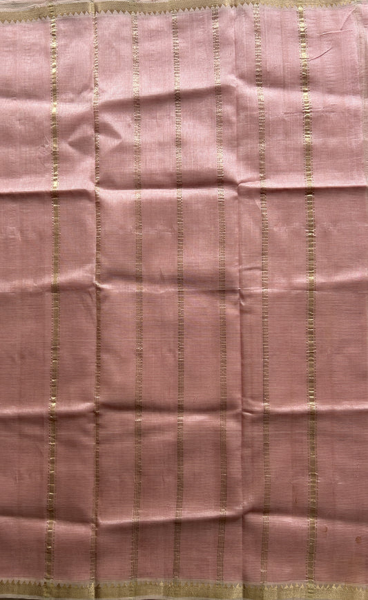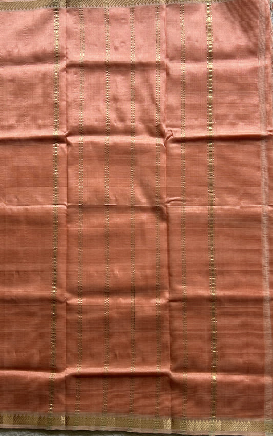 Mangalagiri Plain Pattu Saree Peach colored complemented with a Zari Border.