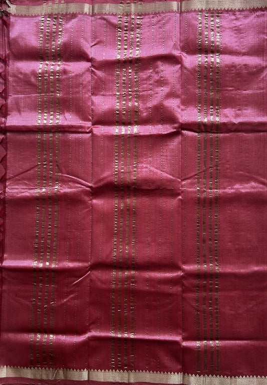 Mangalagiri Plain Pattu Saree Pink colored complemented with a Zari Border.