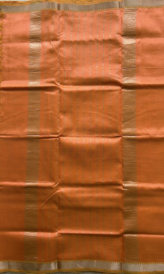 Mangalagiri Plain Pattu Saree Light Orange colored complemented with a Zari Border.