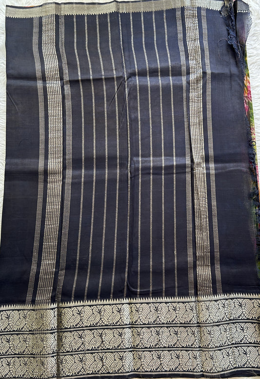 Mangalagiri Pattu Shibori Saree Multi colored complemented with a Dark Navy Blue Color Zari Border
