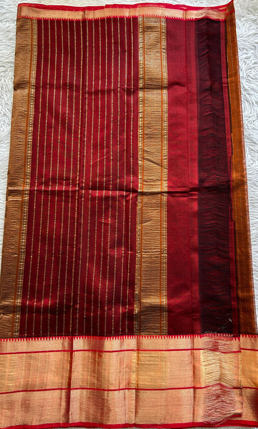 Mangalagiri Plain Pattu Saree Rust colored complemented with a Zari Border