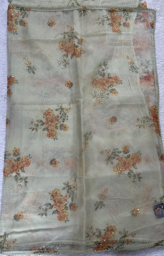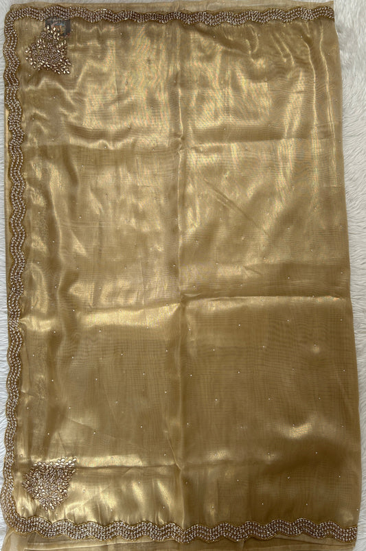 Tissue Organza Designer Saree Beige colored Saree complemented with a Handcrafted border.
