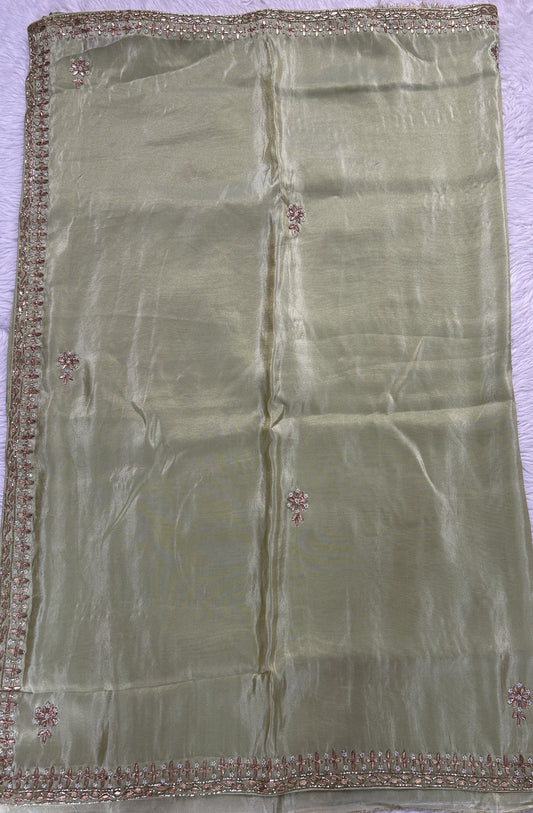 Tissue Organza Designer Saree Light Green colored Saree complemented with a borderless Saree.