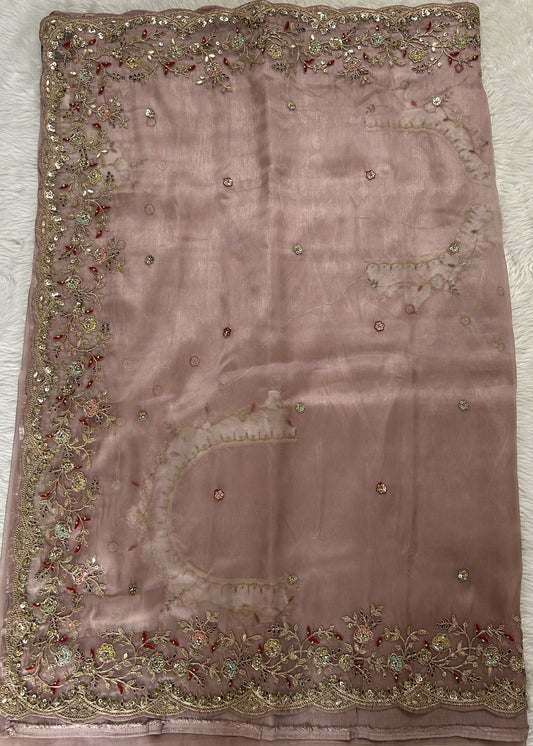 Tissue Organza Designer Saree Onion Pink colored Saree complemented with a Handcrafted border.