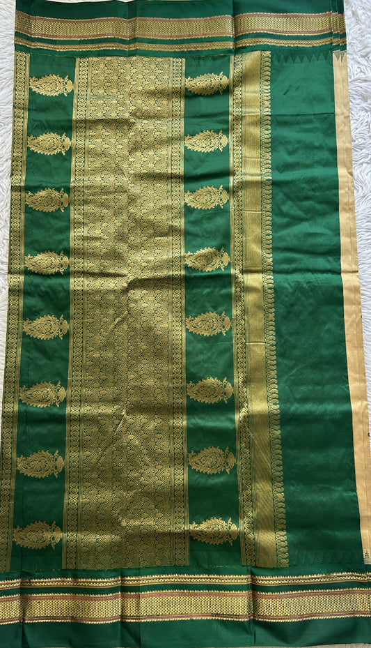 Narayanpet Silk Saree Rama Green Colored Complemented with a Zari Border.