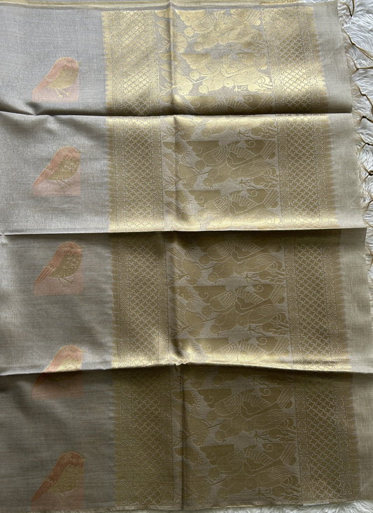 Semi Tussar Saree Beige Colored Complemented with a Zari Border.