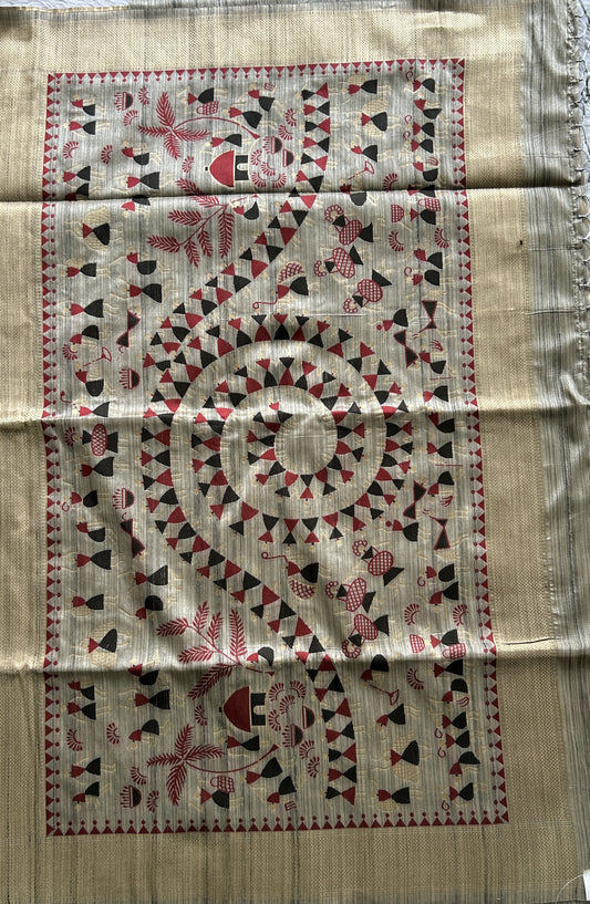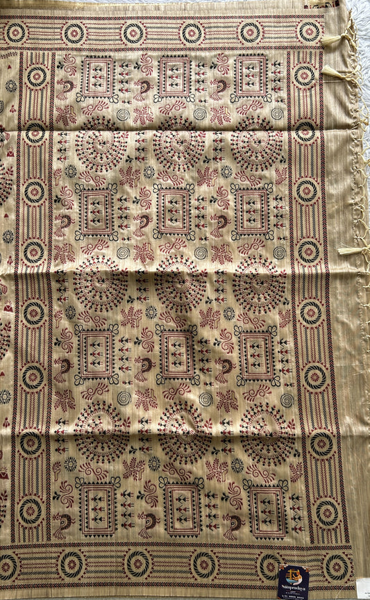 Semi Tussar Saree Cream Colored Complemented with a Zari Border.