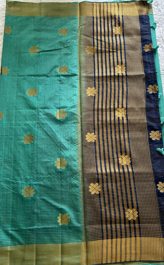 Semi Tussar Saree Sea Green Colored complemented with a Zari Border.