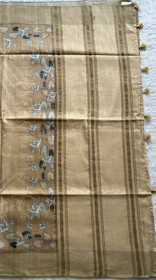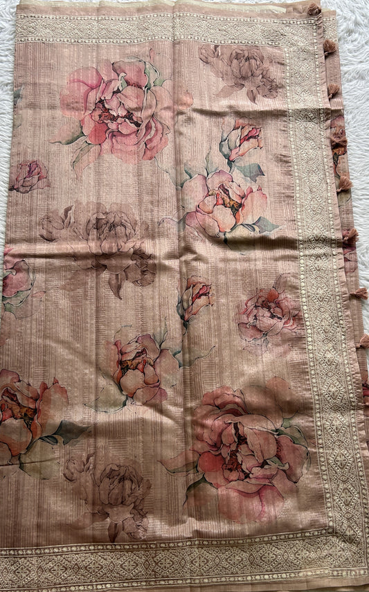 Semi Tussar Saree Biscuit Colored complemented with a Zari Border.