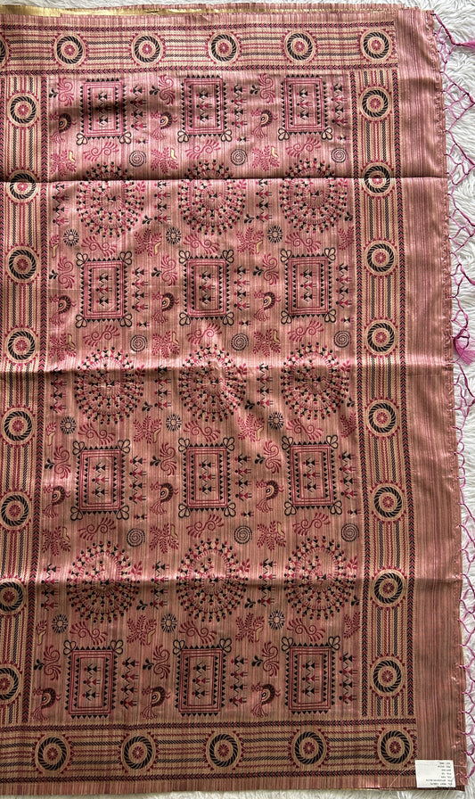 Semi Tussar Saree Pink Colored complemented with a Zari Border.