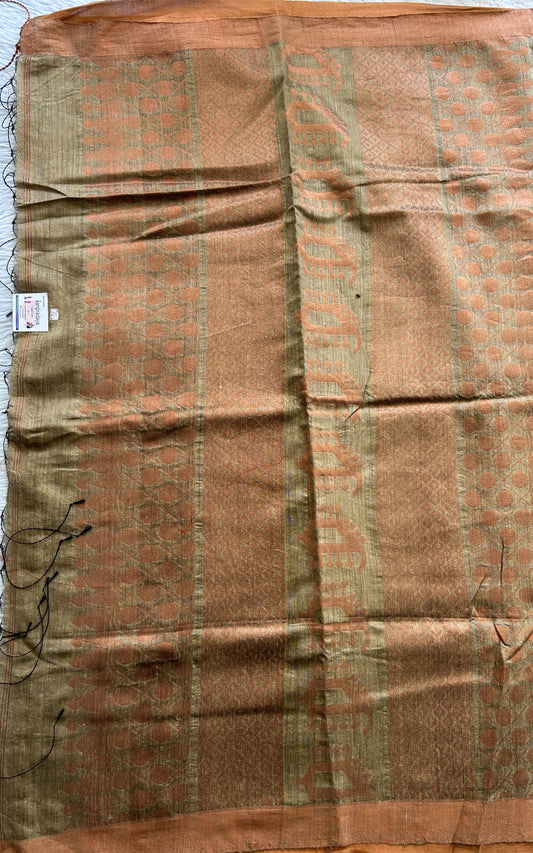 Semi Tussar Saree Light Olive Green colored complemented with a Zari Border.