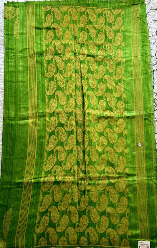 Semi Tussar Saree Pista Green colored complemented with a Zari Border.