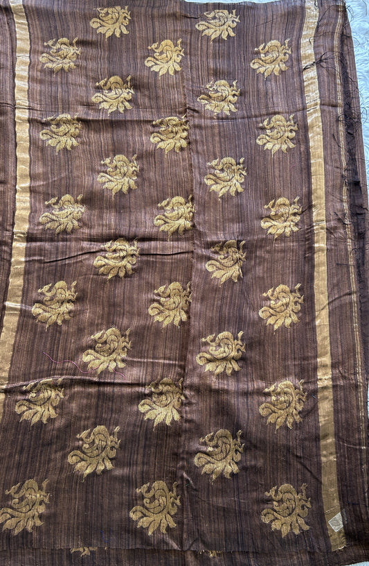 Pure Matka and Muslin Saree Brown Colored Complemented with a Borderless.