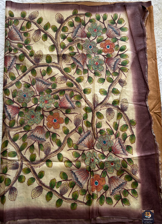 Mangalagiri Pen Kalamkari Saree Off White colored complemented with a Zari border