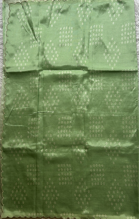 Chanderi Silk Saree Pastel Green color Elegantly Paired with a Gold Zari border